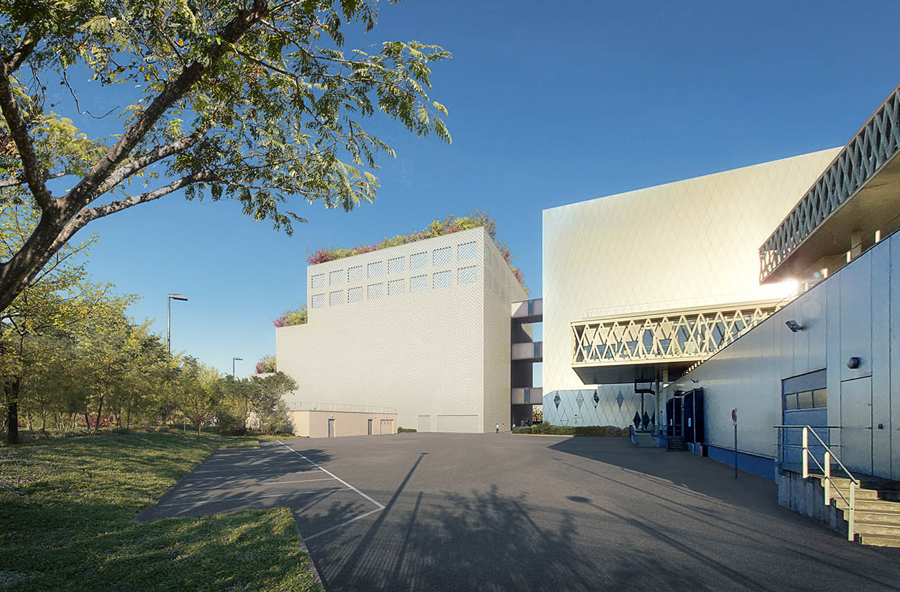 Le projet se présente comme un élément de transition entre l’importante masse du bâtiment de stockage du projet de Massimiliano Fuksas et la Ville.